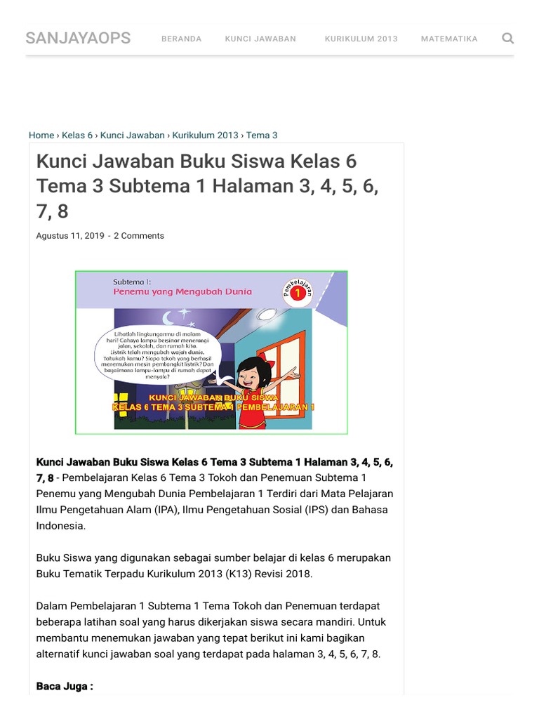 Soal Tematik Kelas 6 Tema 3 Subtema 3 Dan Kunci Jawaban Teori Dan Soal